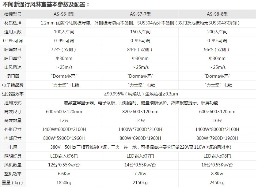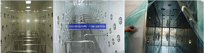 不间断通行风淋室:意为人员不间断、不停留,直接通过风淋室,以达到吹淋效果同时节约吹淋时间。一般为电子车间或电磁生产企业,因人员较多而采用此不间断通行风淋室