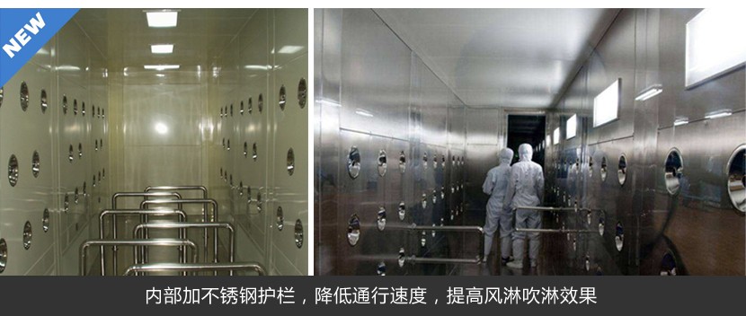 3、 内部可采用不锈钢迂回护栏,使人员缓行通行,保证员工足够的吹淋时间;