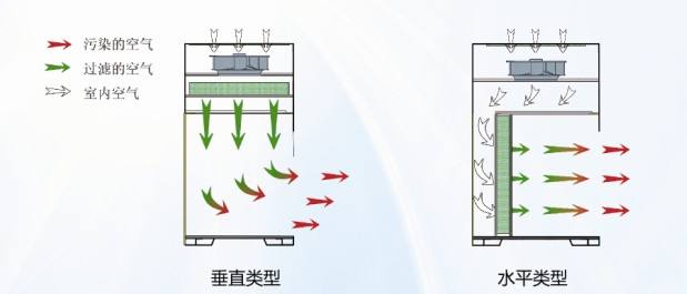 超净工作台根据气流的方向分为垂直层流超净工作台(vertical flow clean bench)和水平层流超净工作台(horizontal flow clean bench),垂直流工作台由于风机在顶部所以噪音较大但是风垂直吹,多用在医药工程这样保证人的身体健康;水平流工作台噪音比较小风向往外所以多用在电子行业,对身体健康影响不大。