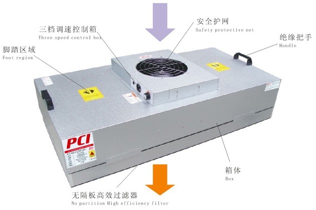FFU过滤机组可模块化连接用,使用FFU风机过滤机组广泛应用于无尘室,无尘操作台,无尘生产线,组装式无尘室和局部百级等应用场合.利用FFU风机过滤机组可制作简易洁净工作台,洁净棚,洁净传递柜和洁净存衣柜等。