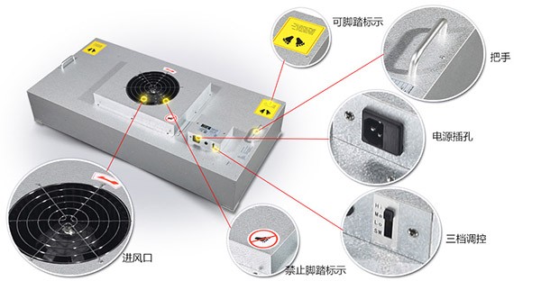 FFU过滤机组控制采用其公司开发之非接触感应式三档调速,电路均采用电器开关控制,控制安全平稳。弹性、多元化配置除标准机型外,可根据客户需求,制作不同规格的非标产品。如:风管连接法兰、滤网、箱体材质等变更。人性化设计机组附装不锈钢把手,使搬运及安装更为方便快捷。