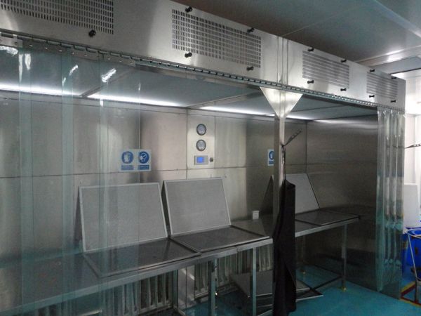 负压称量室是一种用于制药、微生物研究和科学实验等场所专用的局部净化设备,它提供一种垂直单向气流, 部分洁净空气在工作区循环,部分排出至附近区域,使工作区产生负压,防止交叉污染,用于保证工作区的高洁净度环境。 在设备中进行粉尘、试剂称量、分装,可以控制粉尘、试剂外溢、上扬,防止粉尘、试剂对人体的吸入危害,还避免粉尘、试剂的交叉污染,保护外界环境及室内人员的安全。