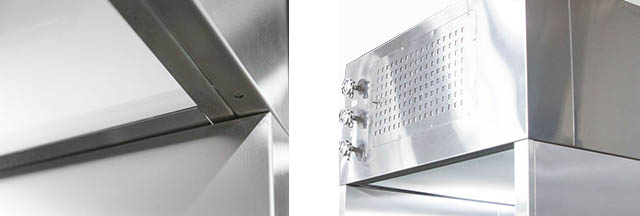 本设备由工作区、回风箱体、风机箱体、出风箱体及外箱体几大部分拼装而成。控制面板位于设备内部工作区正面,控制面板采用轻触型LED控制面板,可以控制风机起停,调节风机工况,调整工作区需要的风速(当设备安装使用后,需由专门人员调节工况)。在其旁有压差计,测试过滤器的阻力在送风箱体的内部还有排风调节板,可以调节设备的排风量在合理的范围内(设备安装就位后,由专业人员设试,请勿擅自调整)