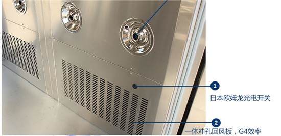 风淋室全部电器及电子联锁、闭门器配件均采用国内;品牌配件保障风淋室安全、稳定运行。LCJ力士坚电子联锁,采用品牌光电开关,确保感应装置稳定可靠。