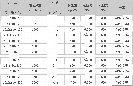 采用超细玻璃纤维滤纸作滤材,以胶板纸、铝箔板等材料折叠为分隔,新型聚氨酯密封胶密封,镀锌板、不锈钢板、铝合金型材为外框,每台均经过严格则试。