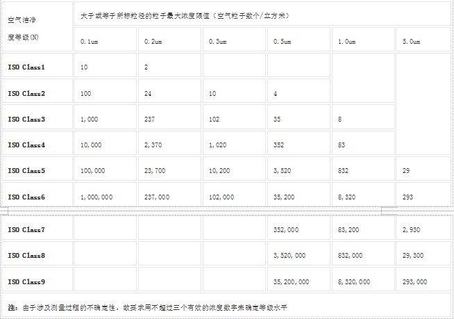 空气洁净度等级ISO14644-1: