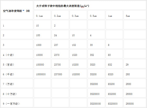 空气洁净度等级等级的划分