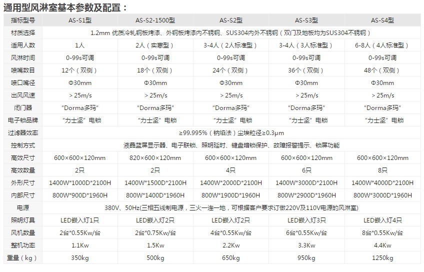 AS-S2型双人标准型双吹风淋室基本配置及说明:
