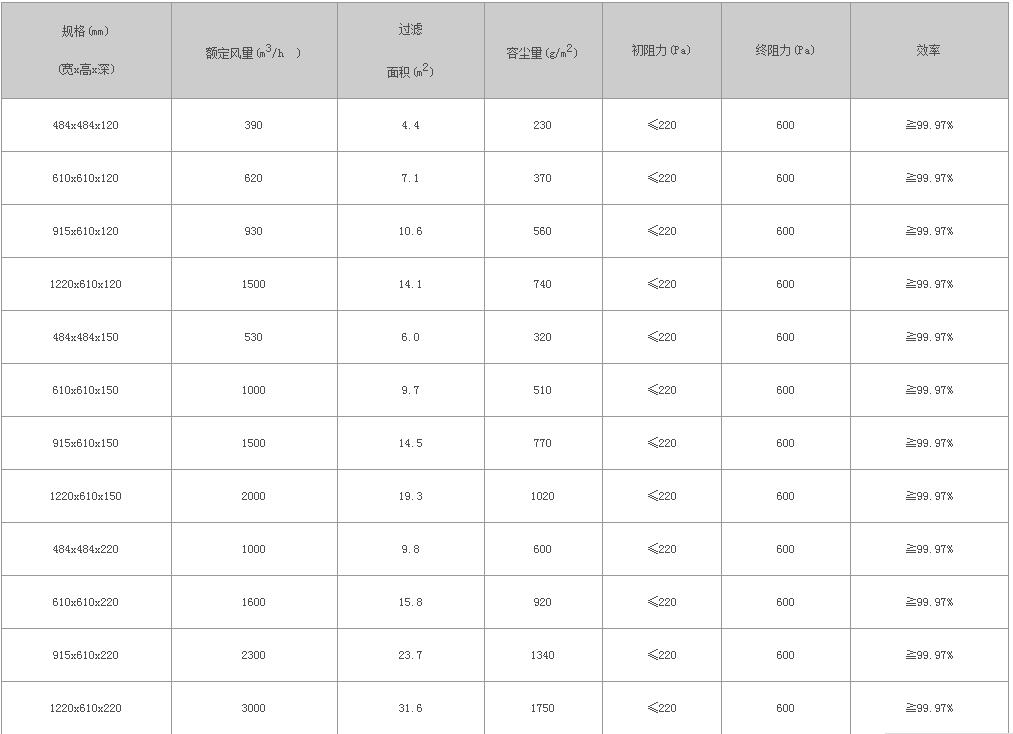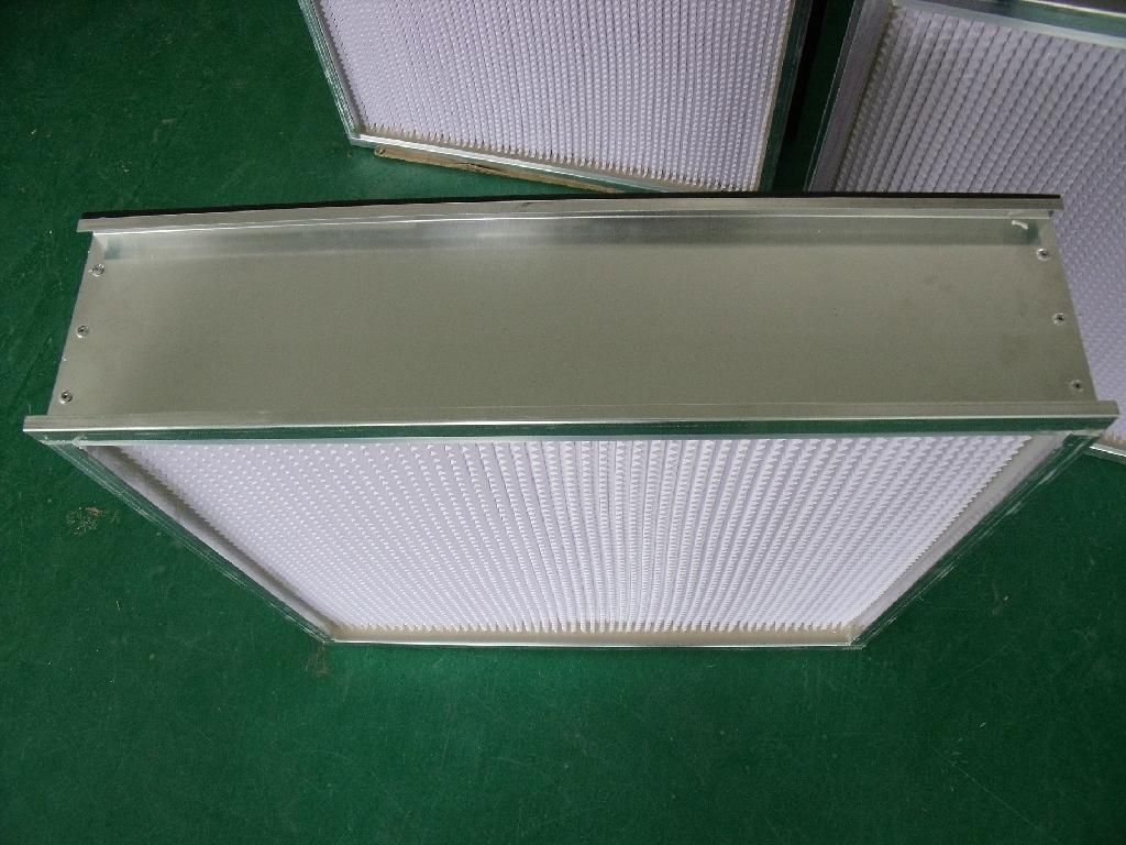 采用超细玻璃纤维滤纸作滤材,以胶板纸、铝箔板等材料折叠为分隔,新型聚氨酯密封胶密封,镀锌板、不锈钢板、铝合金型材为外框,每台均经过严格则试。